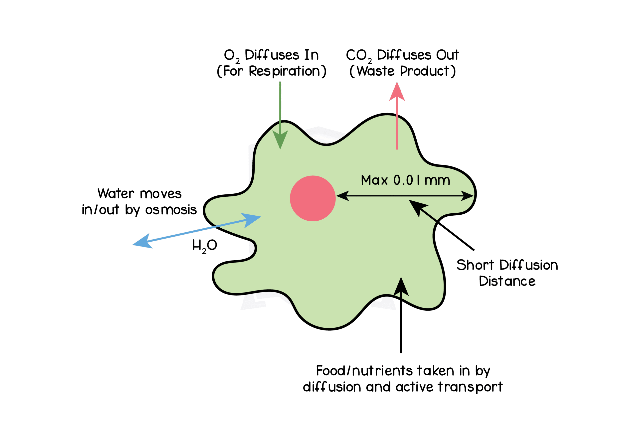 2.10.1 Understand why simple, unicellular organisms can rely on diffusion for movement of substances in and out of the cell