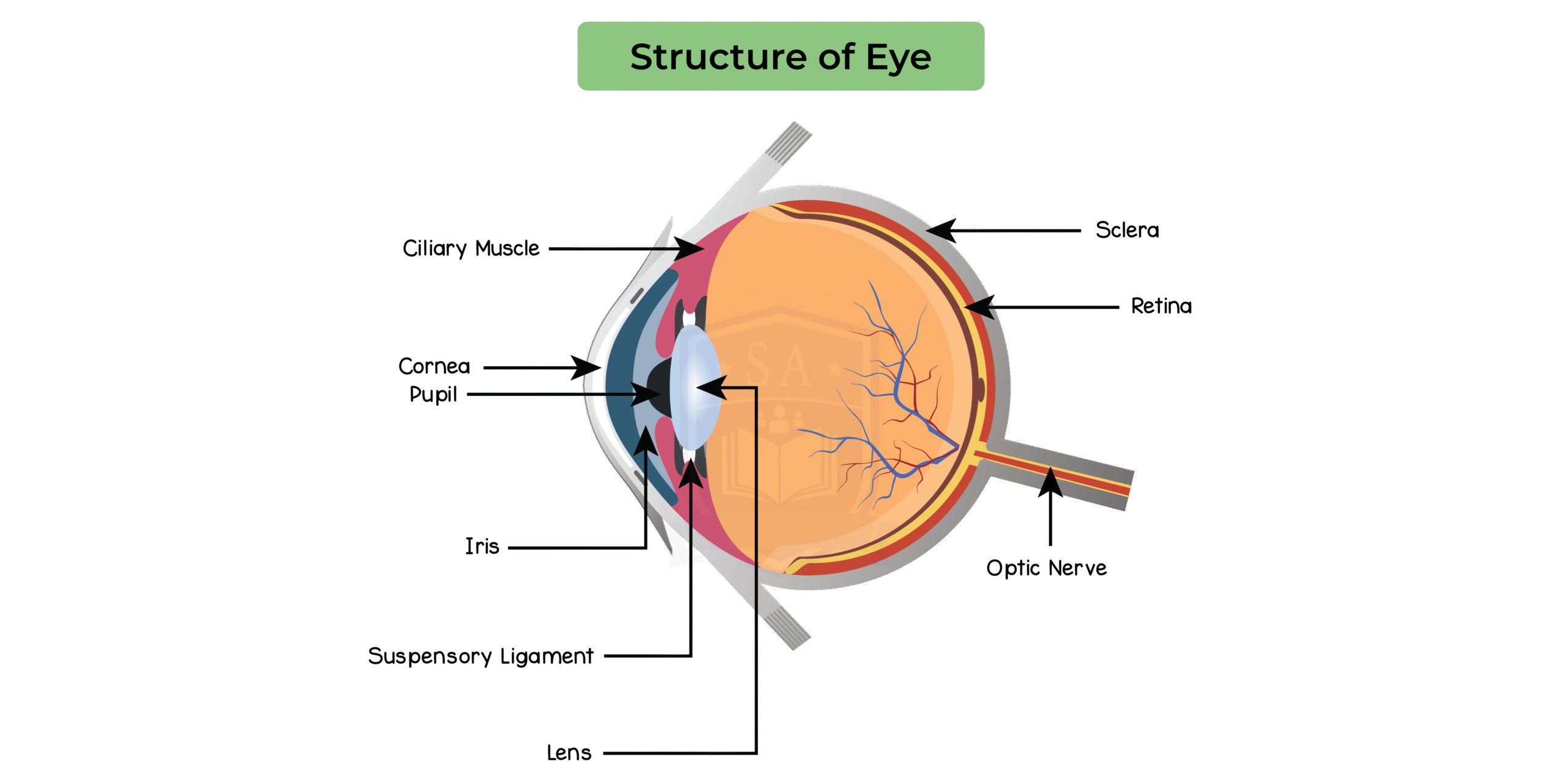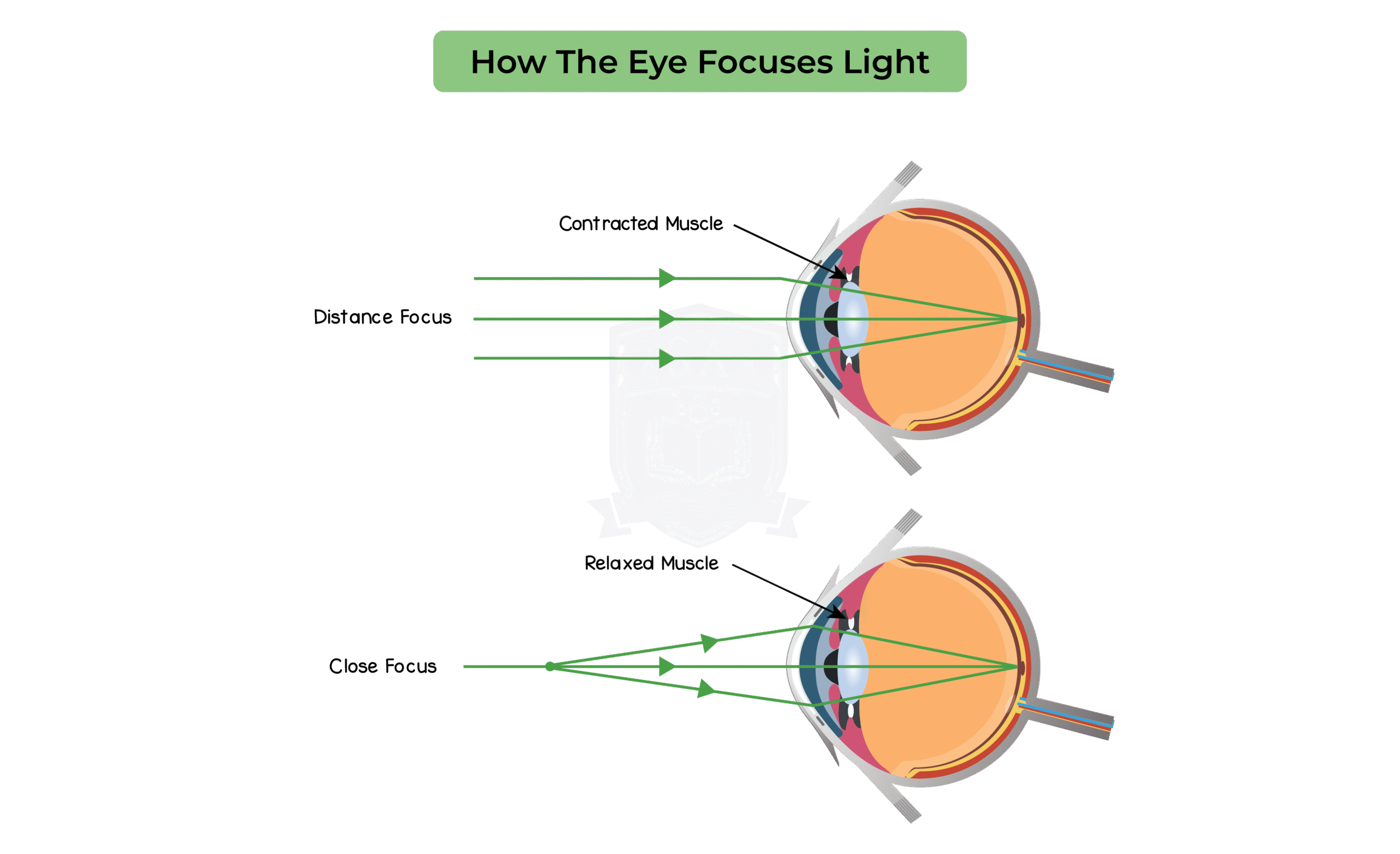 The function of the eye in focusing on near and distant objects