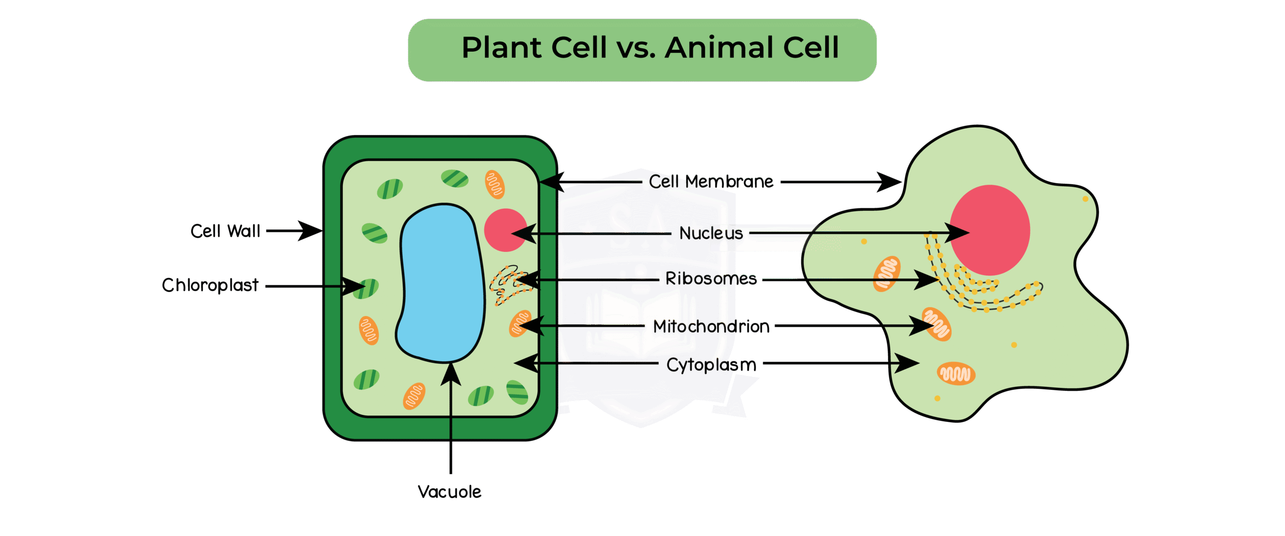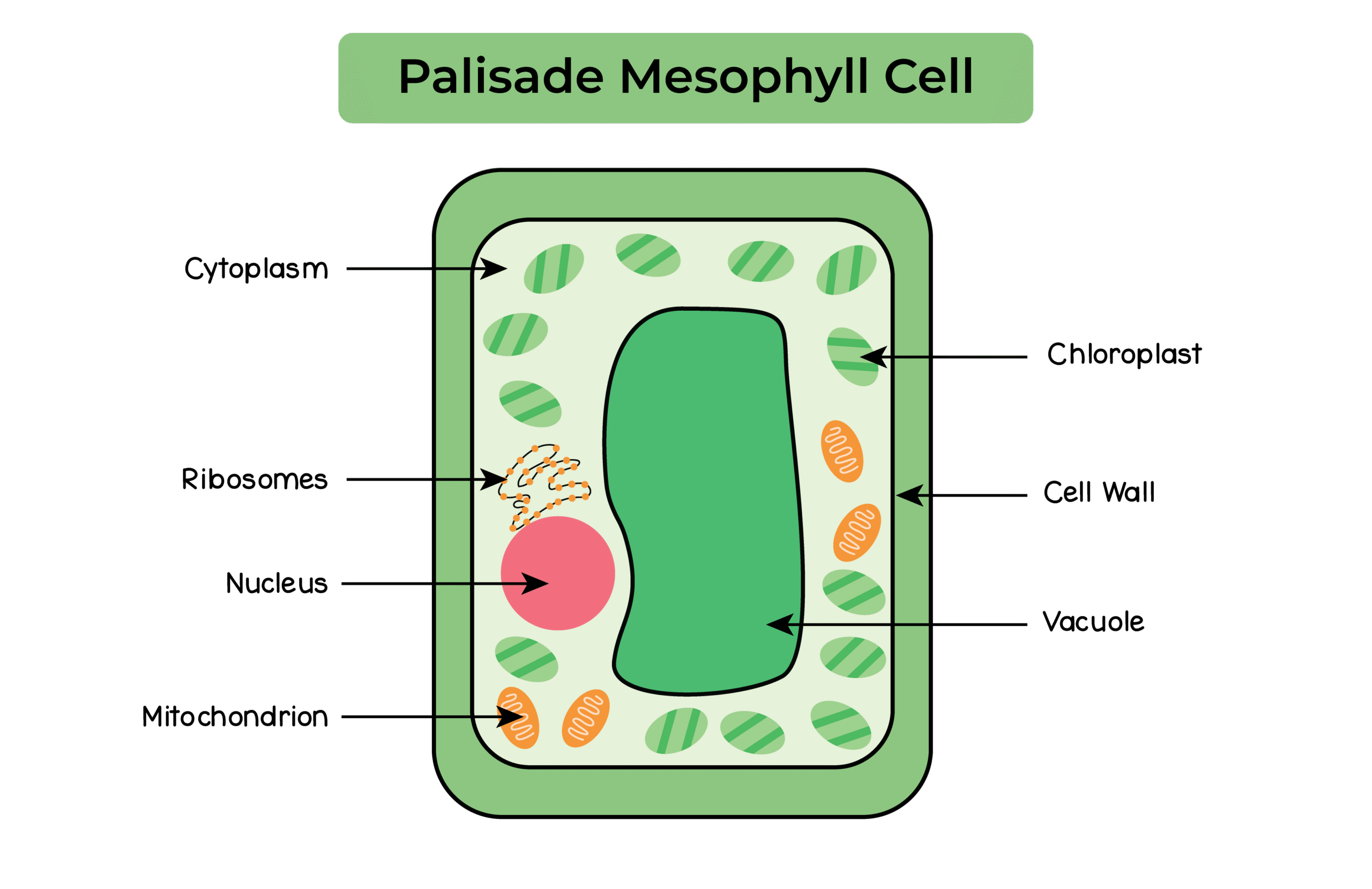 2.2.1 Describe cell structures, including the nucleus, cytoplasm, cell membrane, cell wall, mitochondria, chloroplasts, ribosomes and vacuole