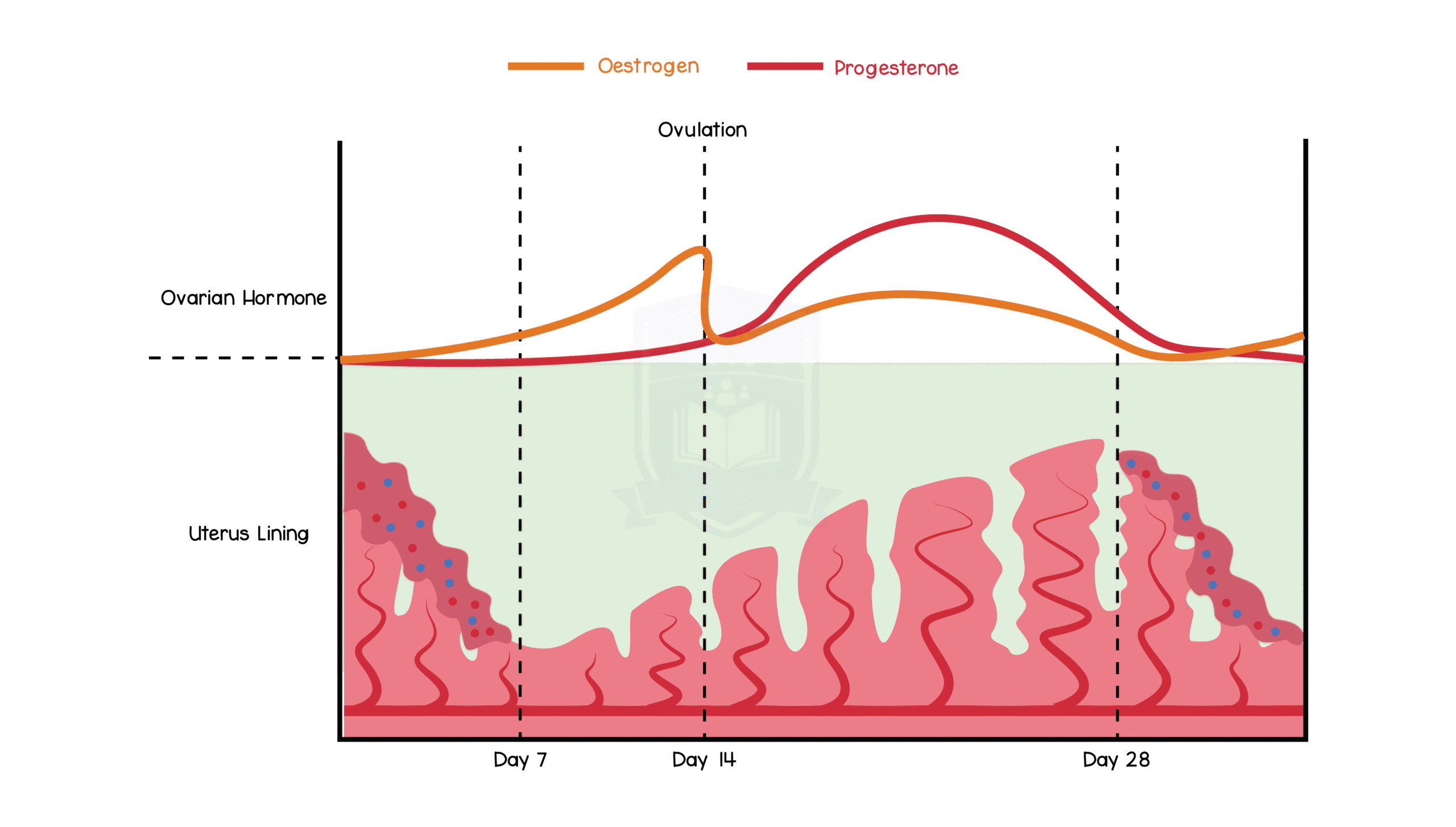 Role of oestrogen and progesterone menstruation: