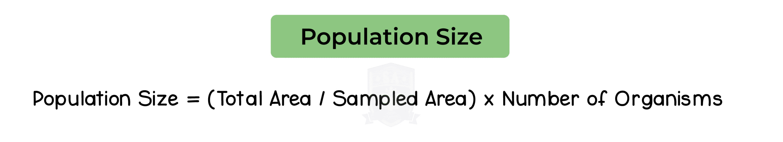 Estimated population size = Total area of survey/Area sampled using quadrat x Total population calculated
