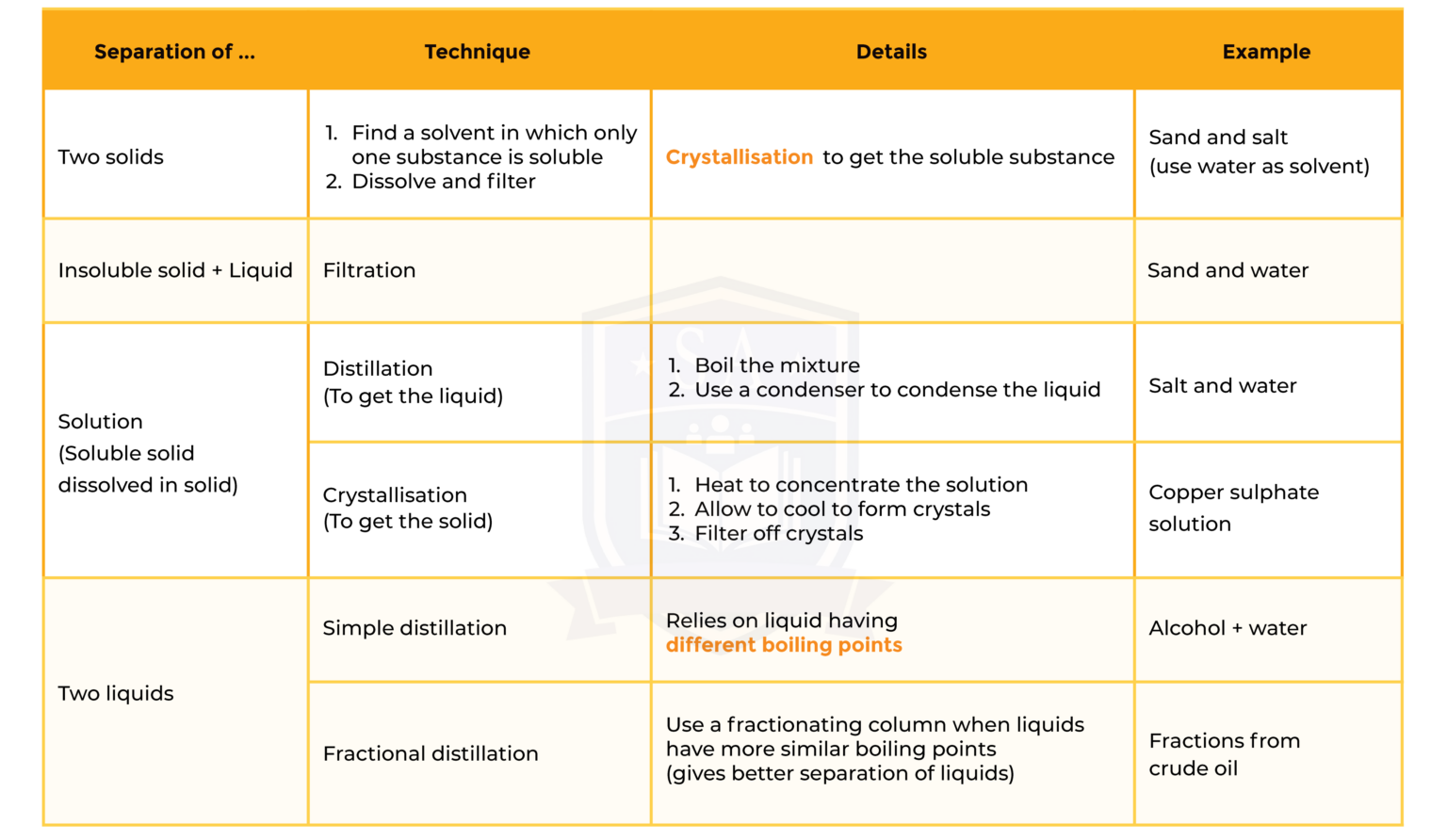 Summary of Separation Technique