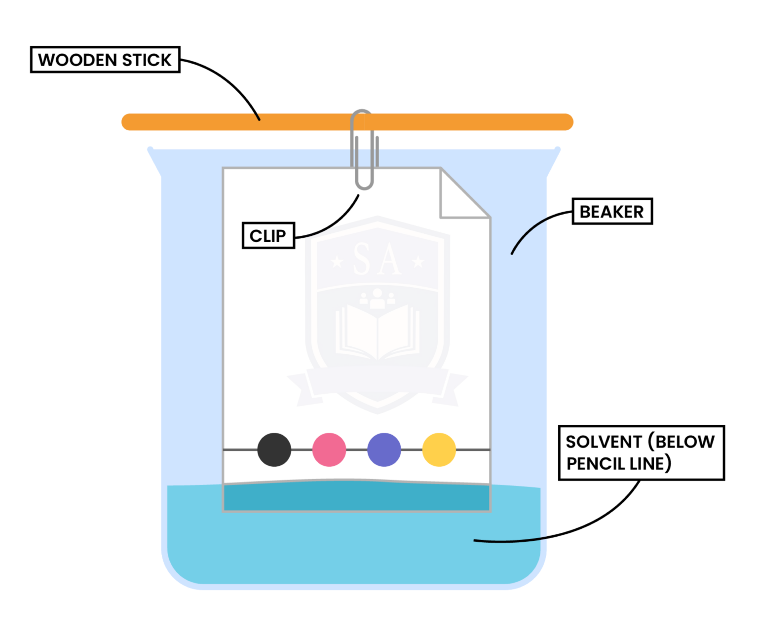 Step 3: The paper is then lowered into the solvent container (make sure that the pencil line sits above the level of the solvent)