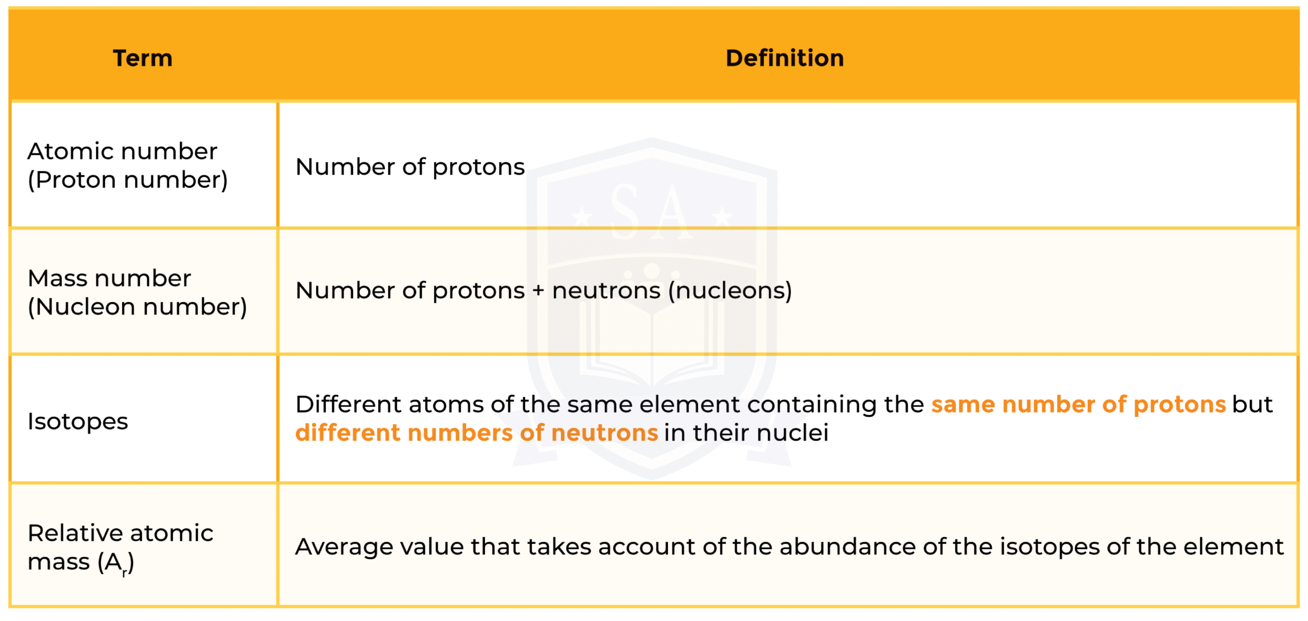 1.3.3 Know what is meant by the terms atomic number, mass number, isotopes and relative atomic mass (Ar)