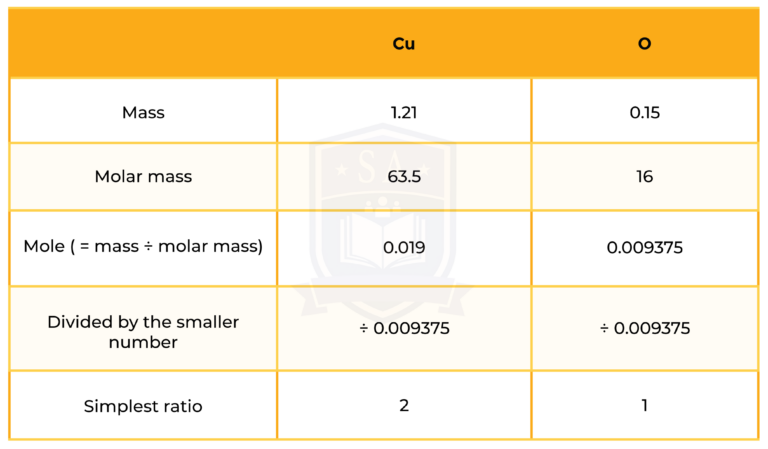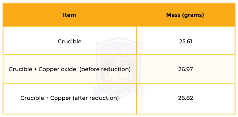 Mass of O = mass (crucible + copper oxide) – mass (crucible + copper)