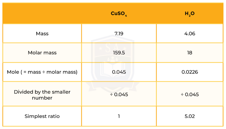 Mass of water = mass of hydrated salt – mass of anhydrous salt