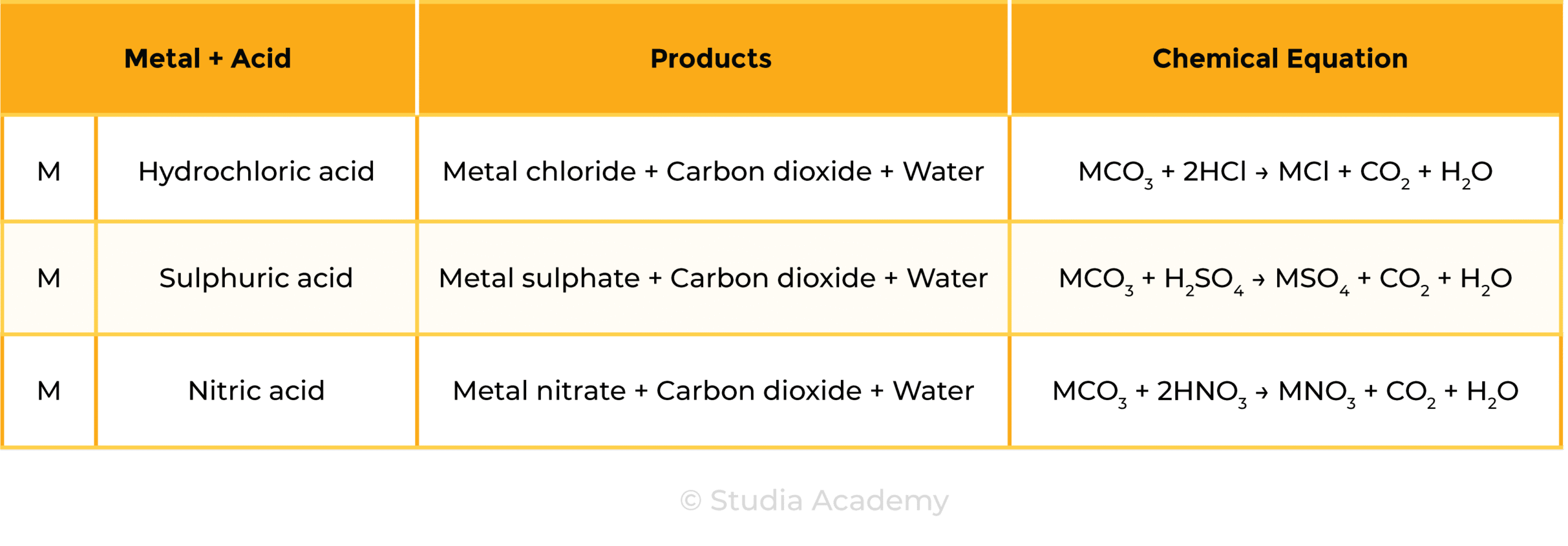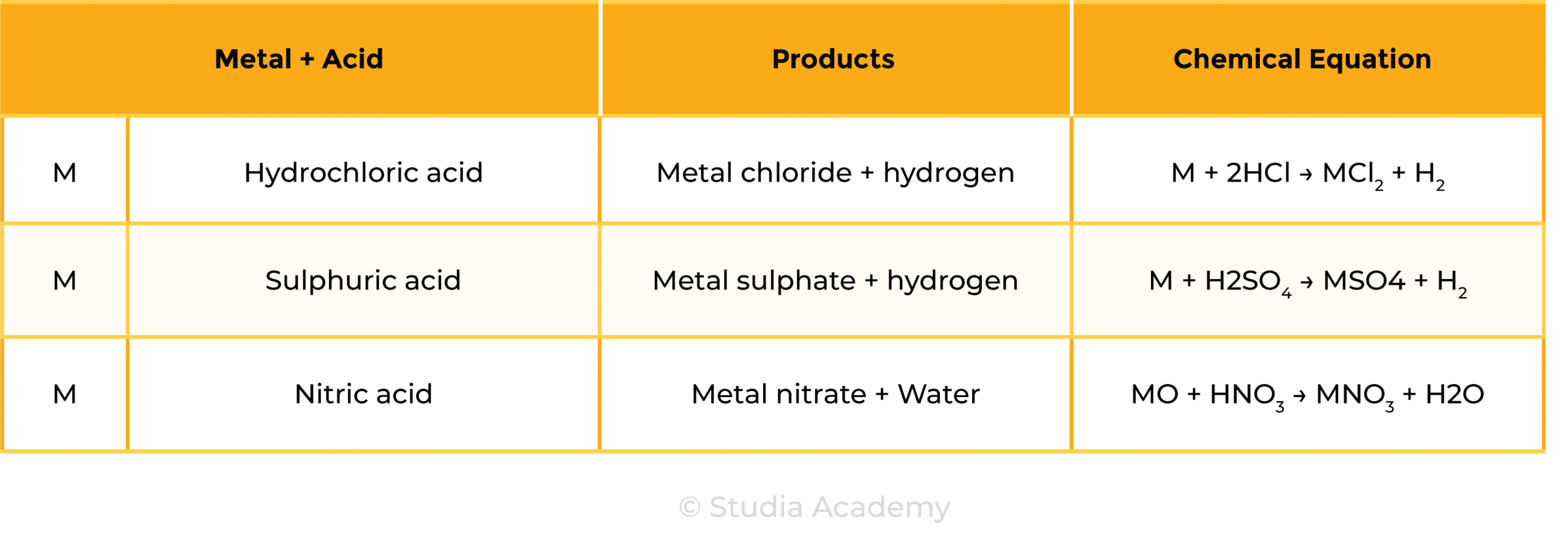 Acid + Metal → Salt + Hydrogen