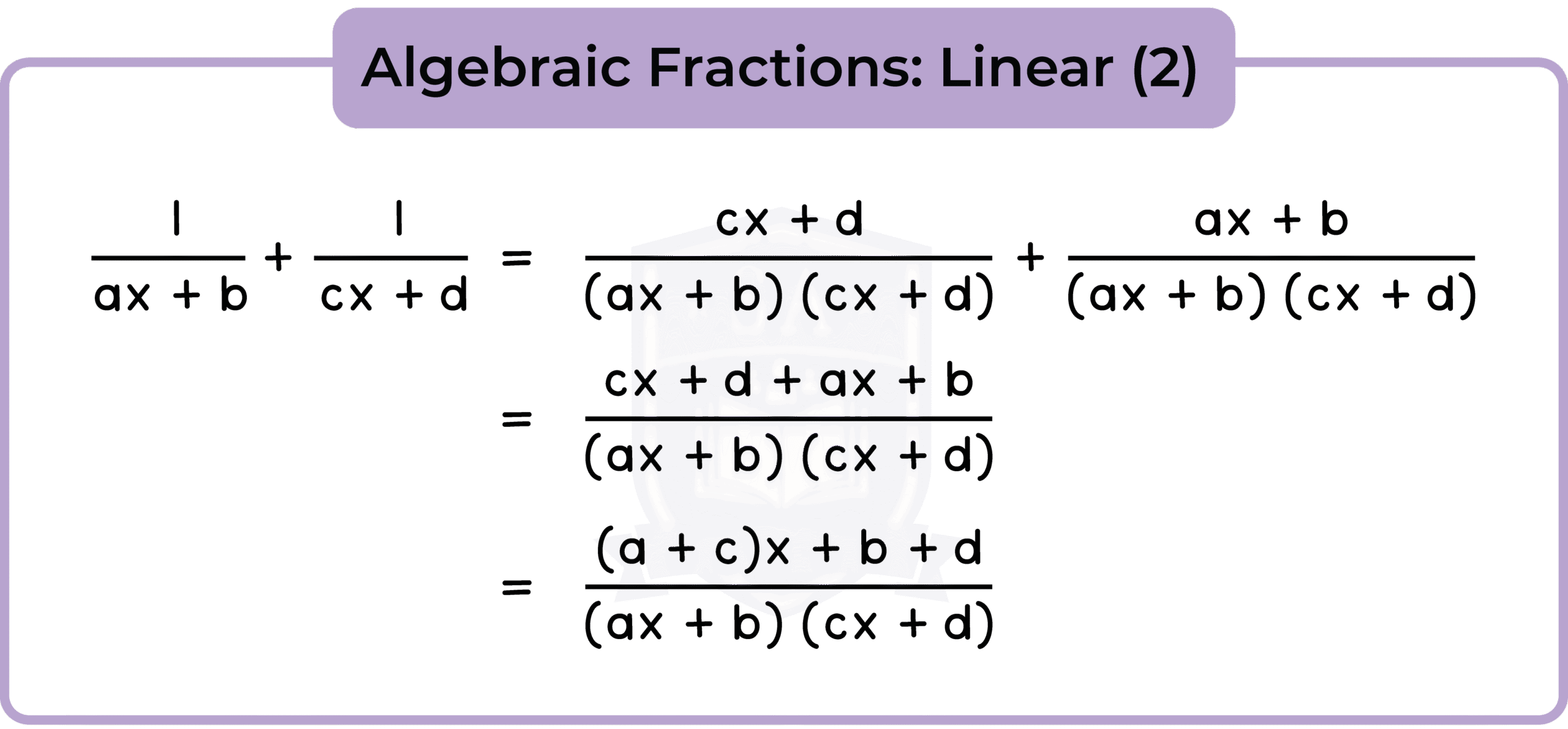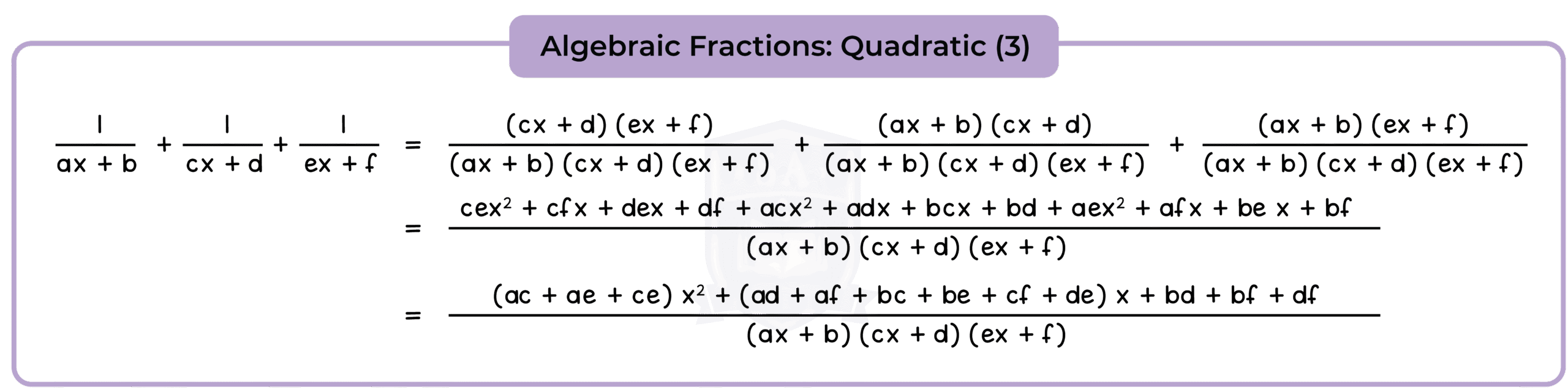 2.2.7 Manipulate algebraic fractions where the numerator and/or the denominator can be numeric, linear or quadratic (Higher Tier Only)