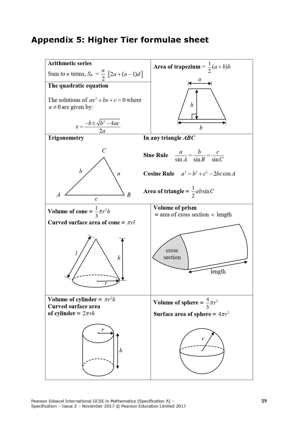 7.4 Appendix 4: Higher Tier Formula Sheet (To Memorise)