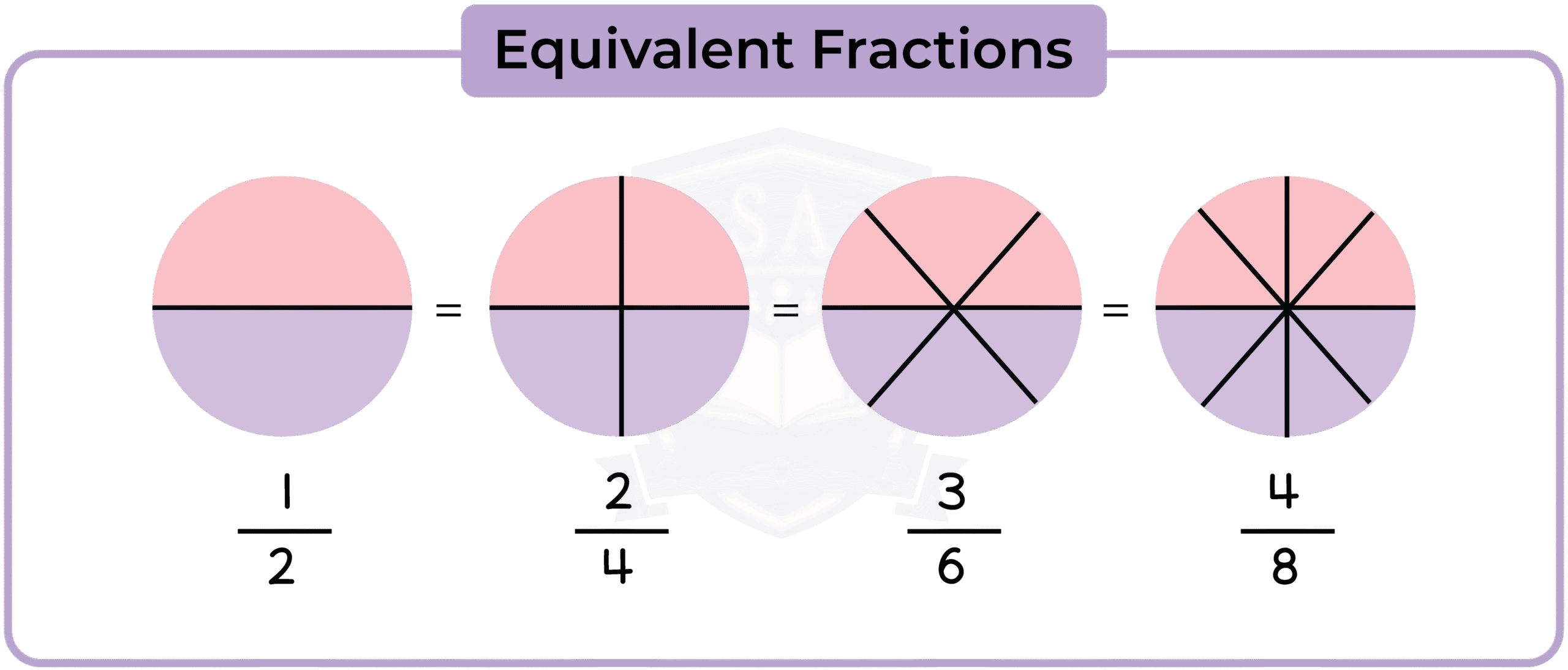 Equivalent fractions are used to compare the sizes of fractions written with a different denominator