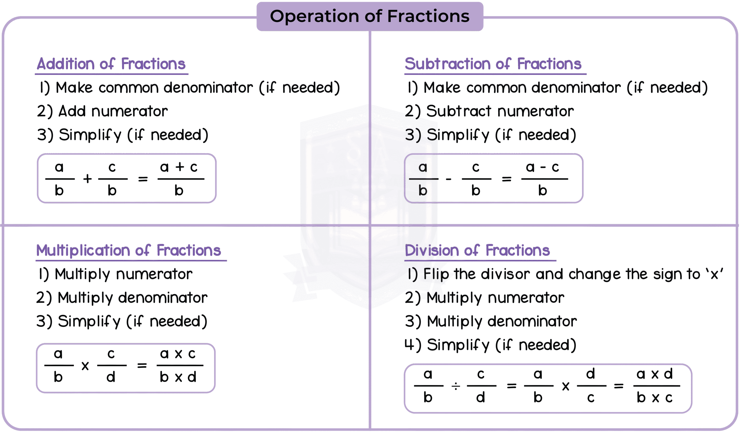Equivalent fractions are also used when adding or subtracting fractions with different denominator.