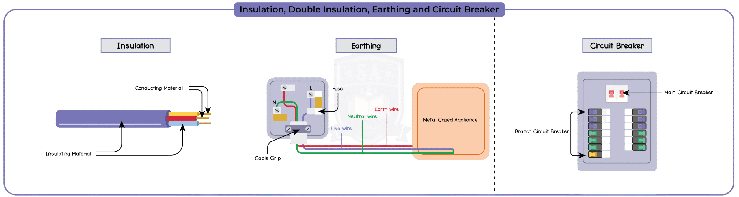 2.1.2 Understand how the use of insulation, double insulation, earthing, fuses and circuit breakers protects the device or user in a range of domestic appliances