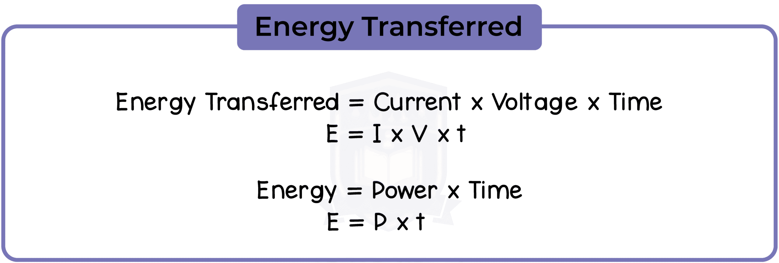 2.1.5 Use the relationship between energy transferred, current, voltage and time: