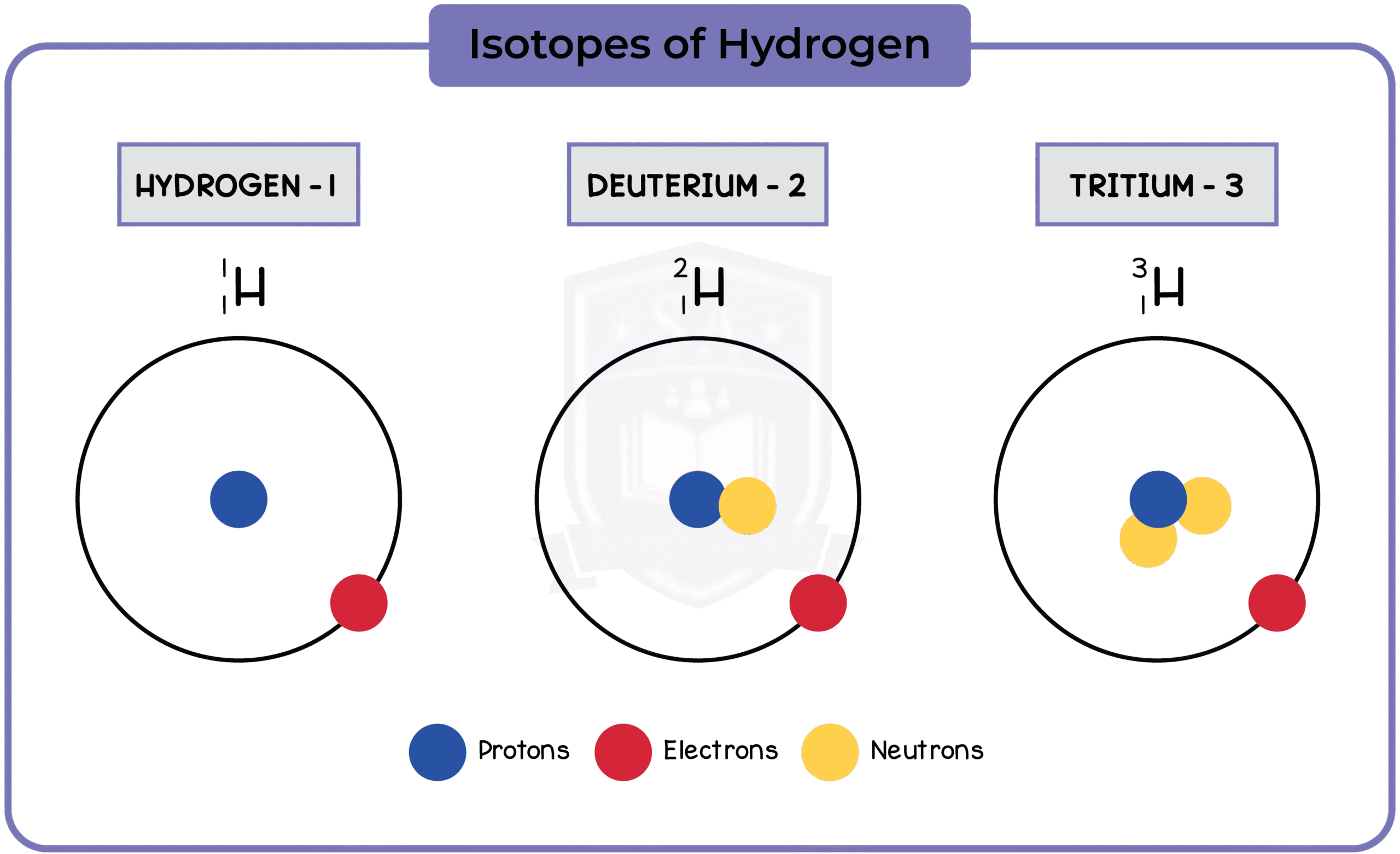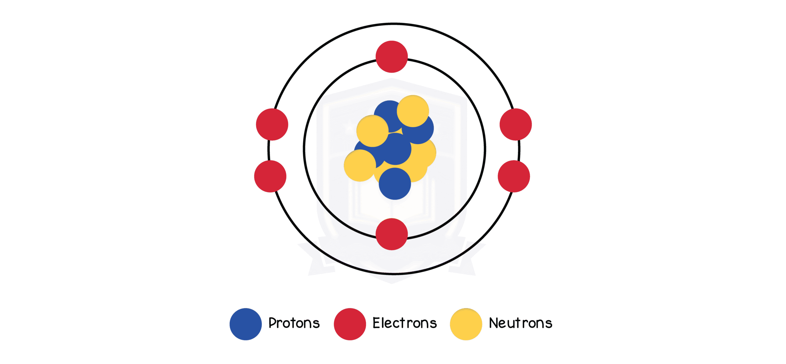 Protons and neutrons form the nucleus, while electrons orbit the nucleus in shells