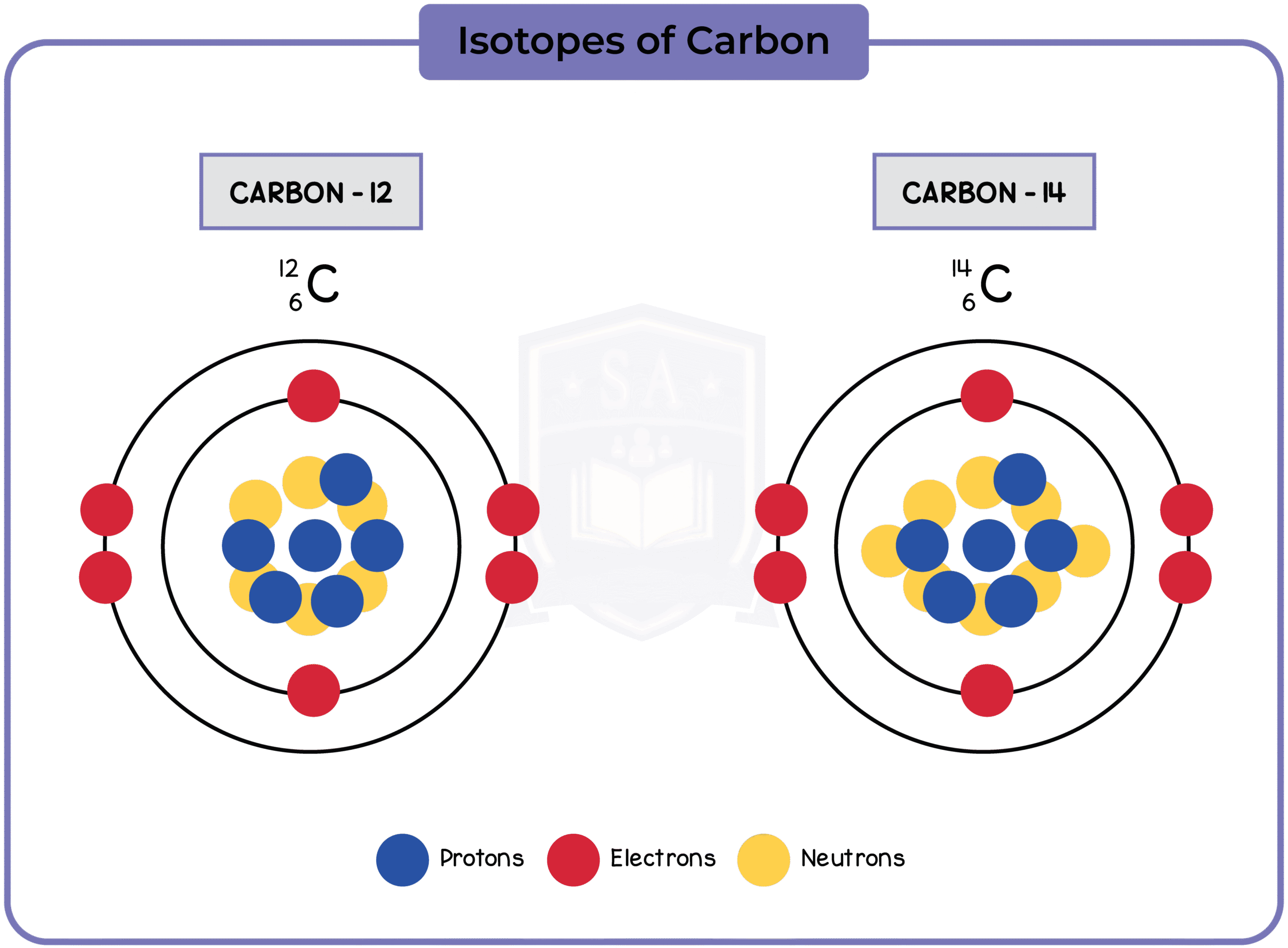 In ¹⁴₆C, 14 is the mass number, and 6 is the atomic number