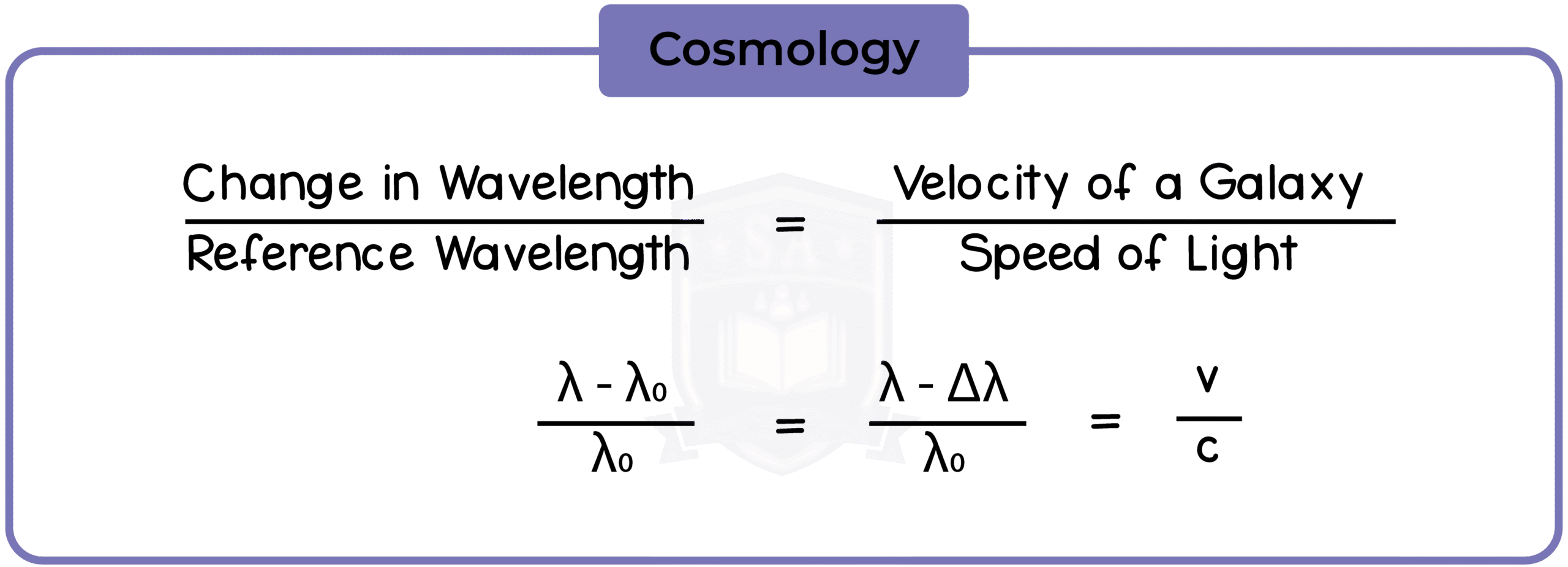 8.3.4P Use the equation relating to change in wavelength, reference wavelength, velocity of a galaxy and the speed of light: